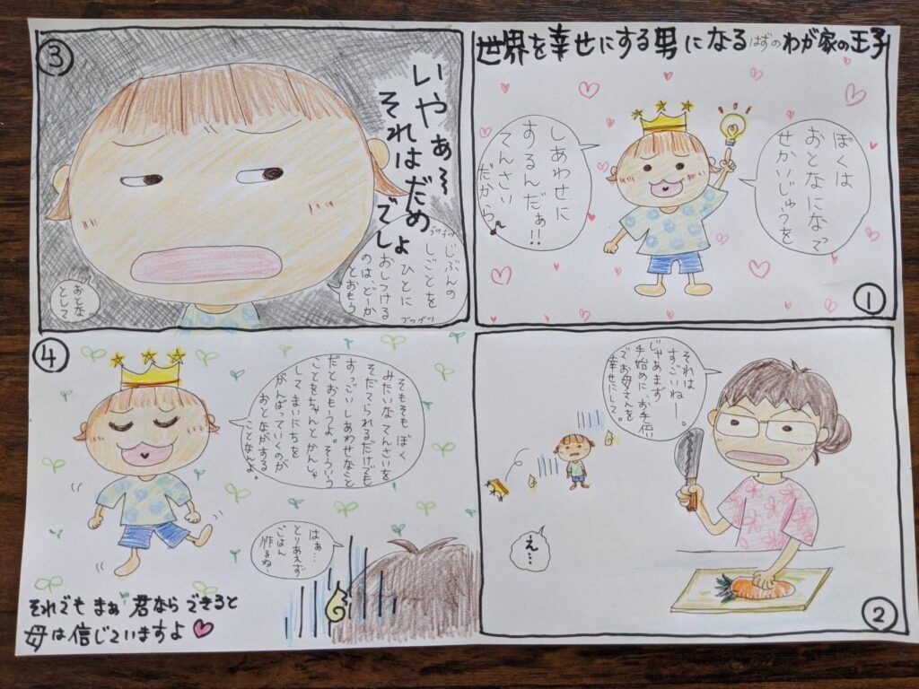 ずいぶん前に私が書いた四コマ漫画が(^^;)。