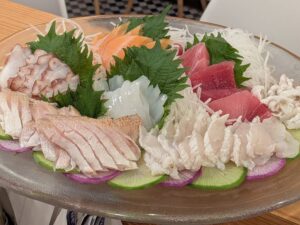 (生サーモン・鮪・関門たこ・アカイカ・河豚のたたき・アカムツ(のどぐろ)の炙り)