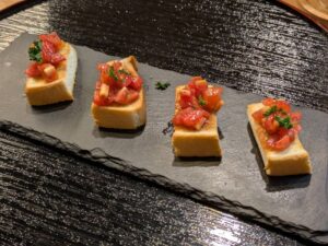 まずはルールに則ってそれぞれ「1ドリンク1フード」を注文。