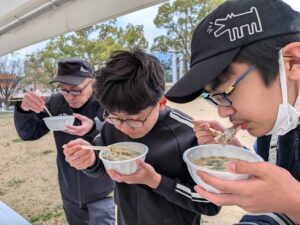 雨が降り始めたことで撤収作業が進み、残っている分を大盤振る舞いしてもらえたので、満腹に(*´▽`*)。