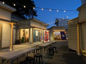 (暴風雨で提灯が破損してなくなってるものの、)電灯の明かりが結構いい感じ。
