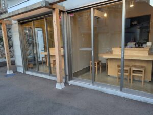 私たちが訪問した際は、すでに6席中4席が埋まっている状態で(そもそも6席のお店に家族4人で訪問するのが無謀(^^;))、屋外のフリースペースで食事することに。