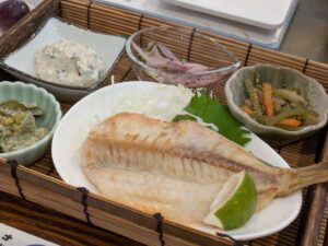 これがちゃんと焼いた状態で、しかも旬の食材の副菜4品やデザートまでついたランチが1200円!