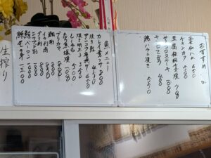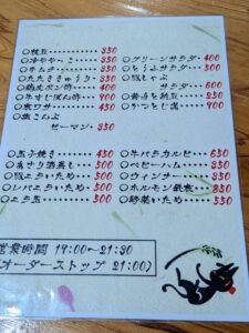 ディナー営業ではランチとは違うお品書きが用意してあった。